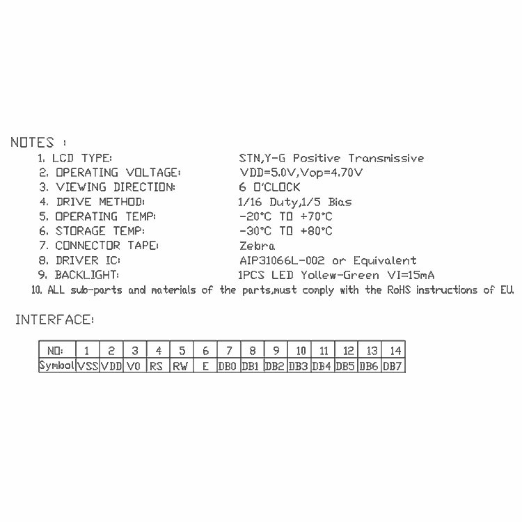 | LCD type | STN(Y/G) / positive; FSTN(Grey) / Negative |