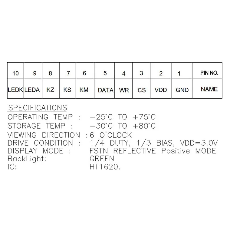 | Driving Method | 1/4 Duty, 1/3 Bias |
